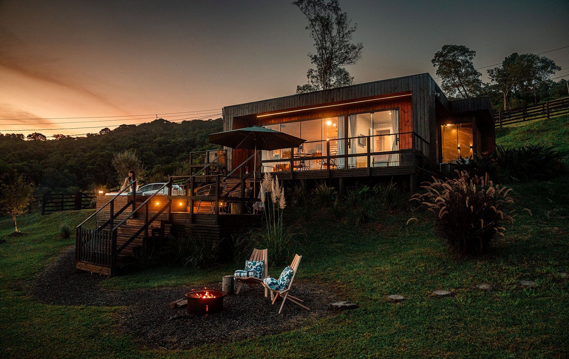 natureza ao redor, banheiras quentes, lareira acesa