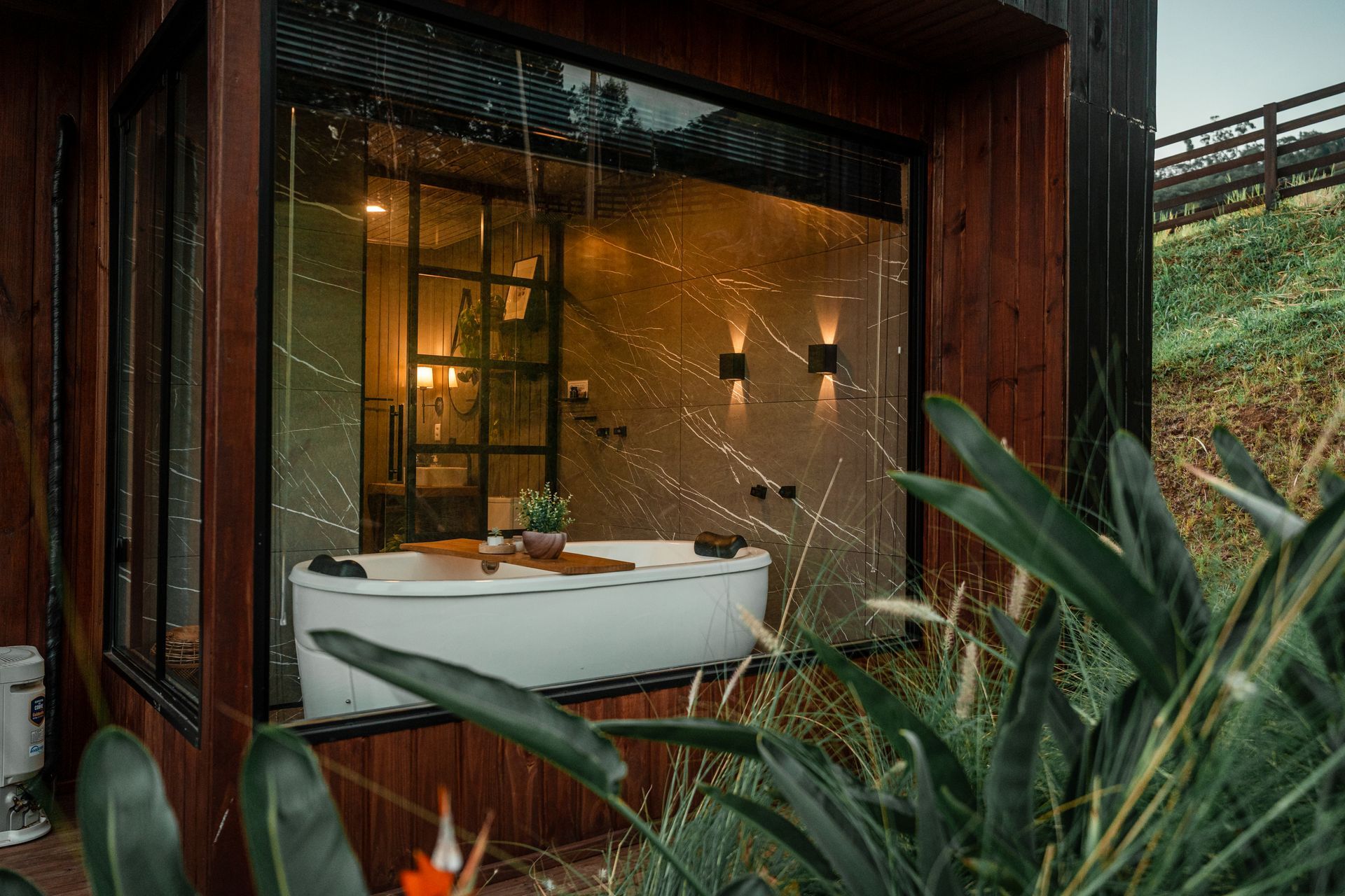 Silêncio, uma banheira e uma vista que convida a ficar.